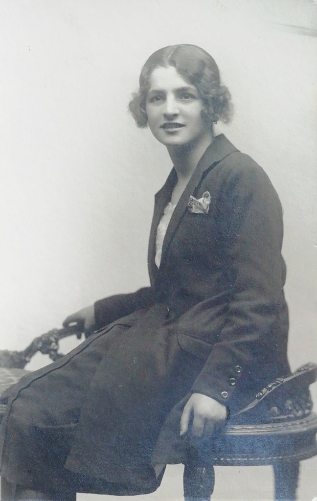 Al lado de una de las nueve mujeres doctoras de medicina.