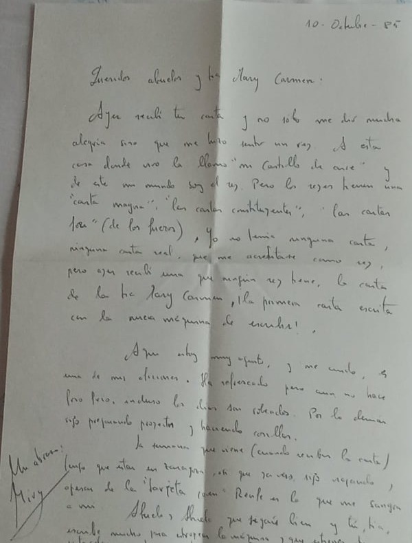 Fue algunos veranos a la sierra, al chalé del tío Juan José. Le gustaba jugar a cosas de espiritismo como la guija, en plan de cachondeo y de entretenernos. Es muy parlanchina.