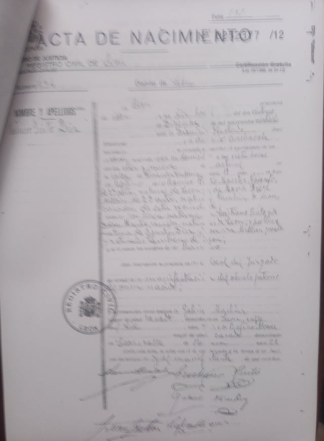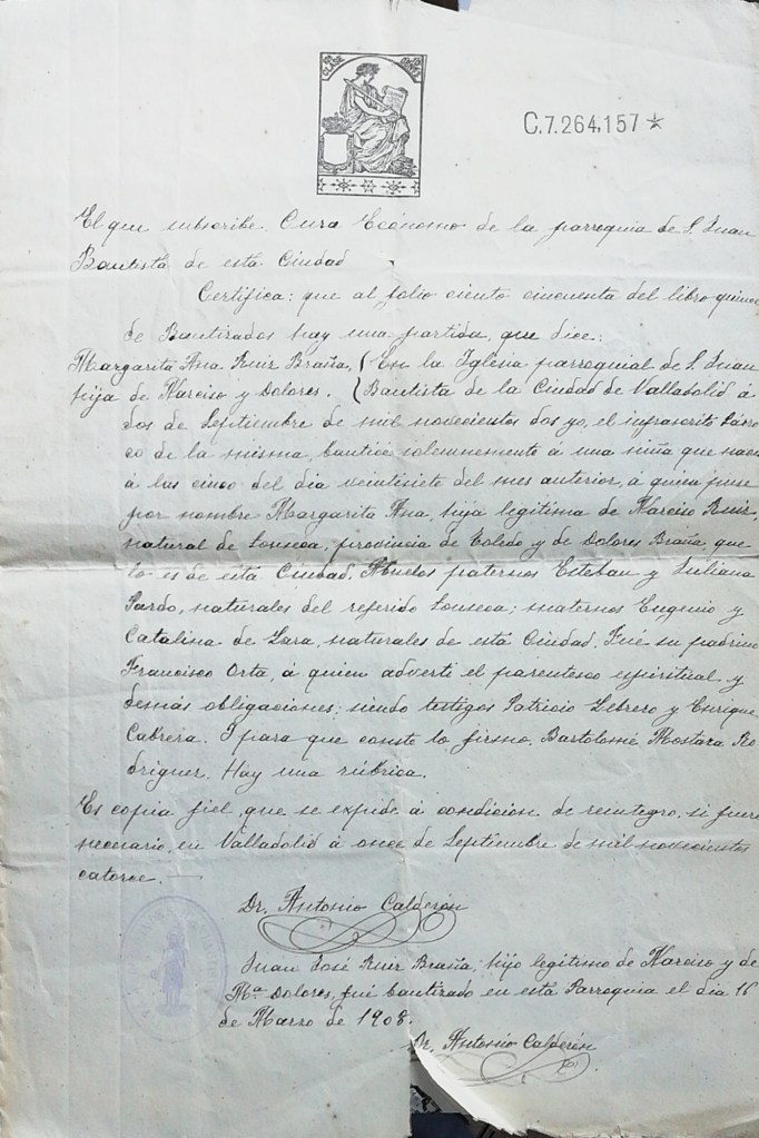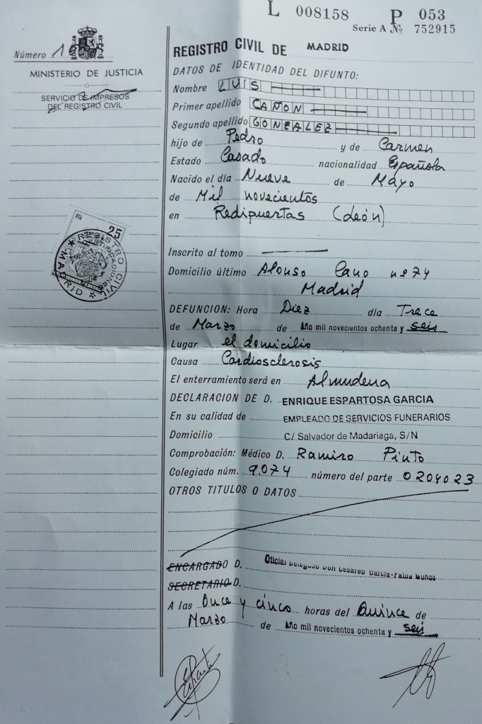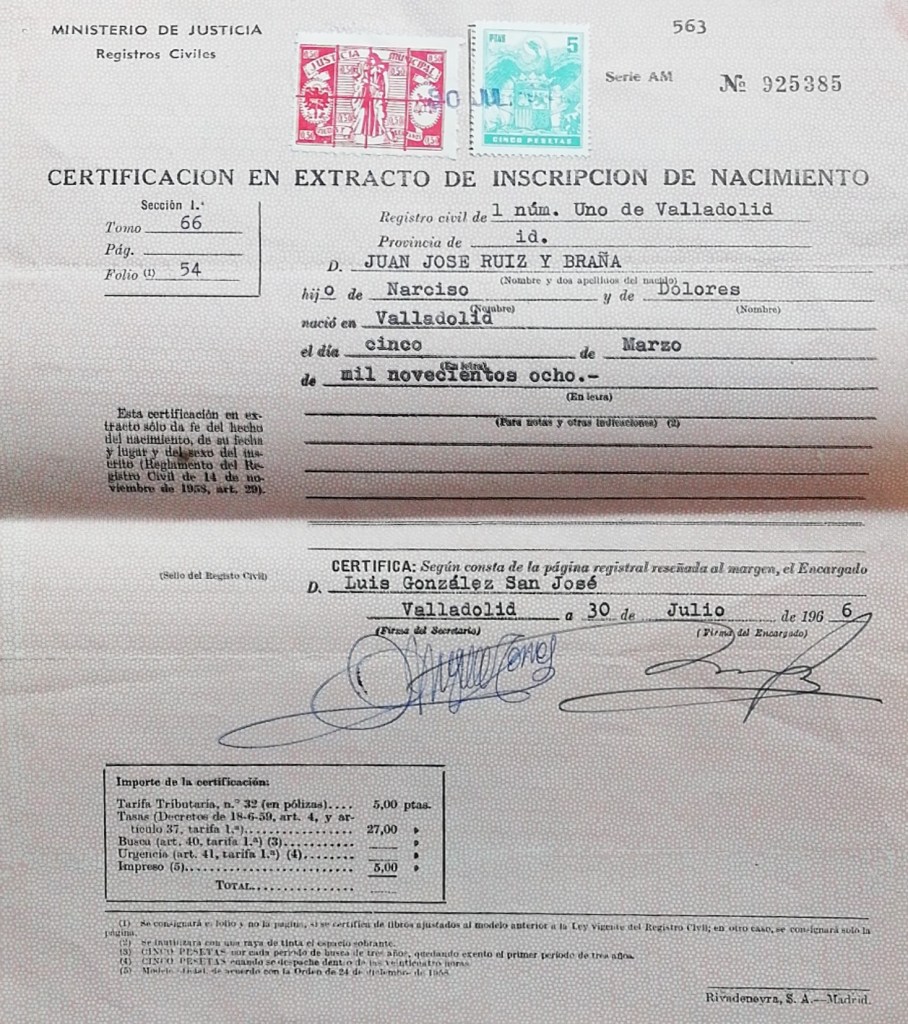 en la partida de nacimiento), Cristina Ayala, María Cañón, Borja Jímenez y Ana Ayala.