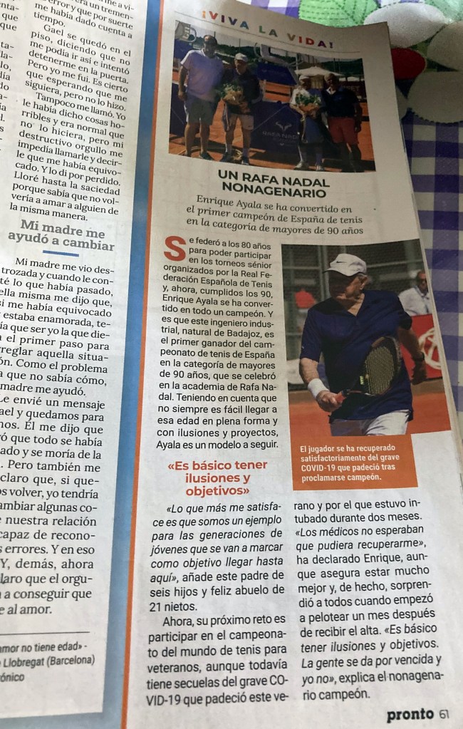 El tío Quique fue el primer cvampeón de España de tenis de más de 90 años. Jugó el campeonato en Palma de Mallorca, junio de 2022. Al volver enfermó de neumonía por el coronavirus, recuperándose y apareciendo su gesta deportiva en medios de comunicación: televisiones, radios y revistas.