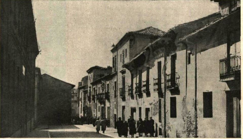 Imagen de la calle Cadórniga el año 1940. La casa que sobresale es donde nació.