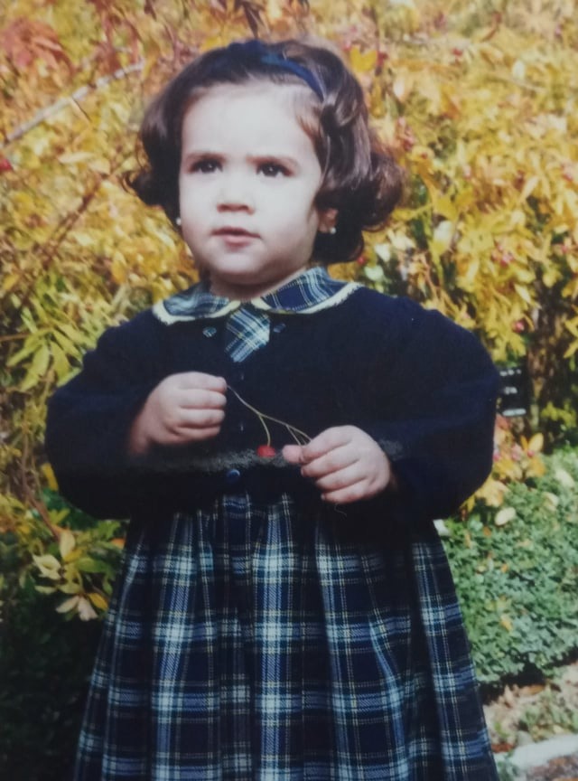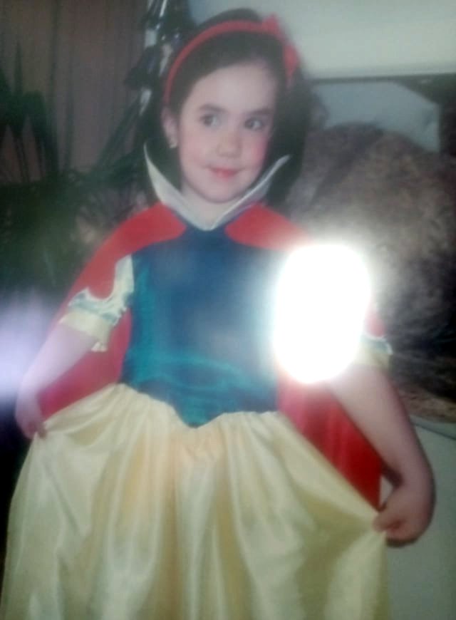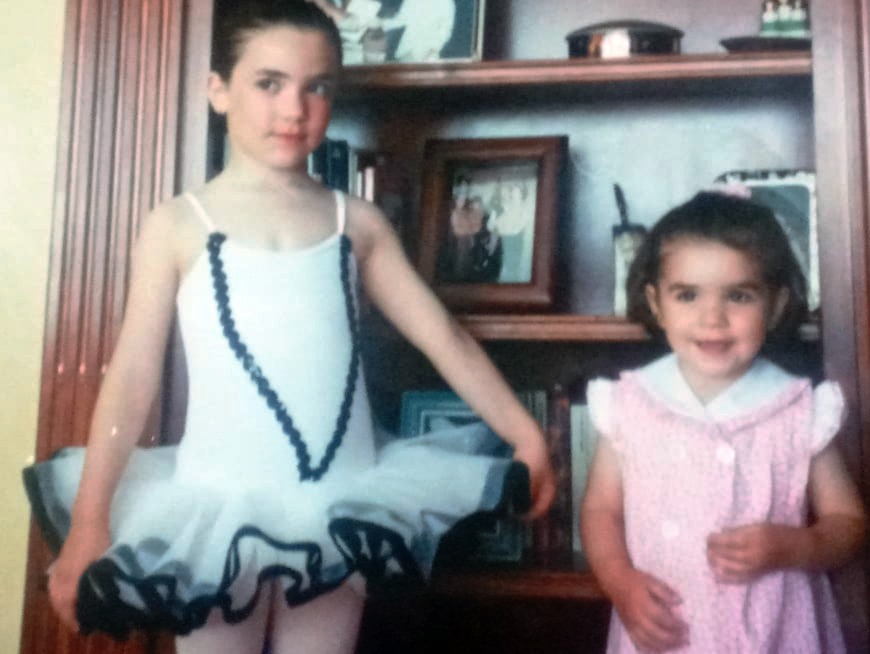 (Vestida de ballet con su hermana Elisa, año 2001; Jugando con Daira en la pradera del chalé, año 2004.)