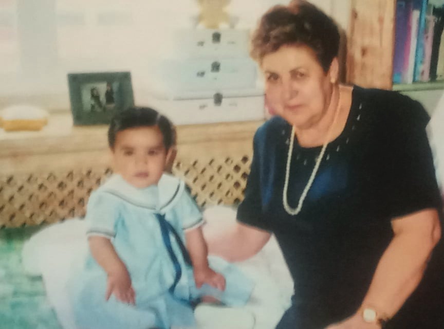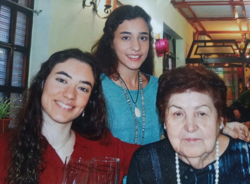 La tía Marisa observando llevando sobre sí a una sobrina.