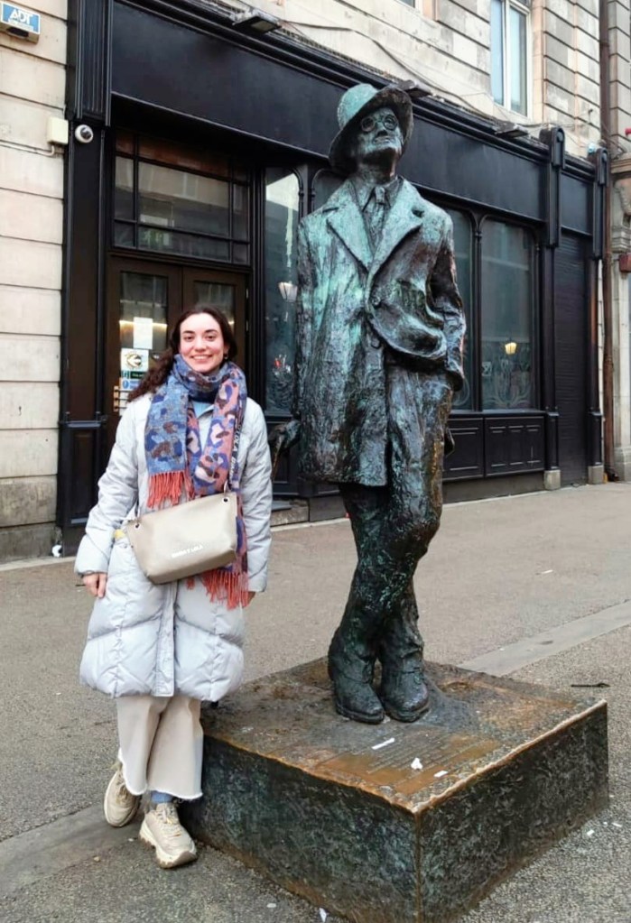 En Dublín junto a la estatua del autor de «Dublineses» y «Ulises», James Joyce. Año 2023