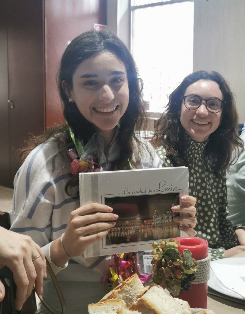 Elisa, acompaña de su hermana Lucía, celebrando el cumpleaños 24, en León durante la Jornada de los Pinto de esta ciudad. Julio de 2024.