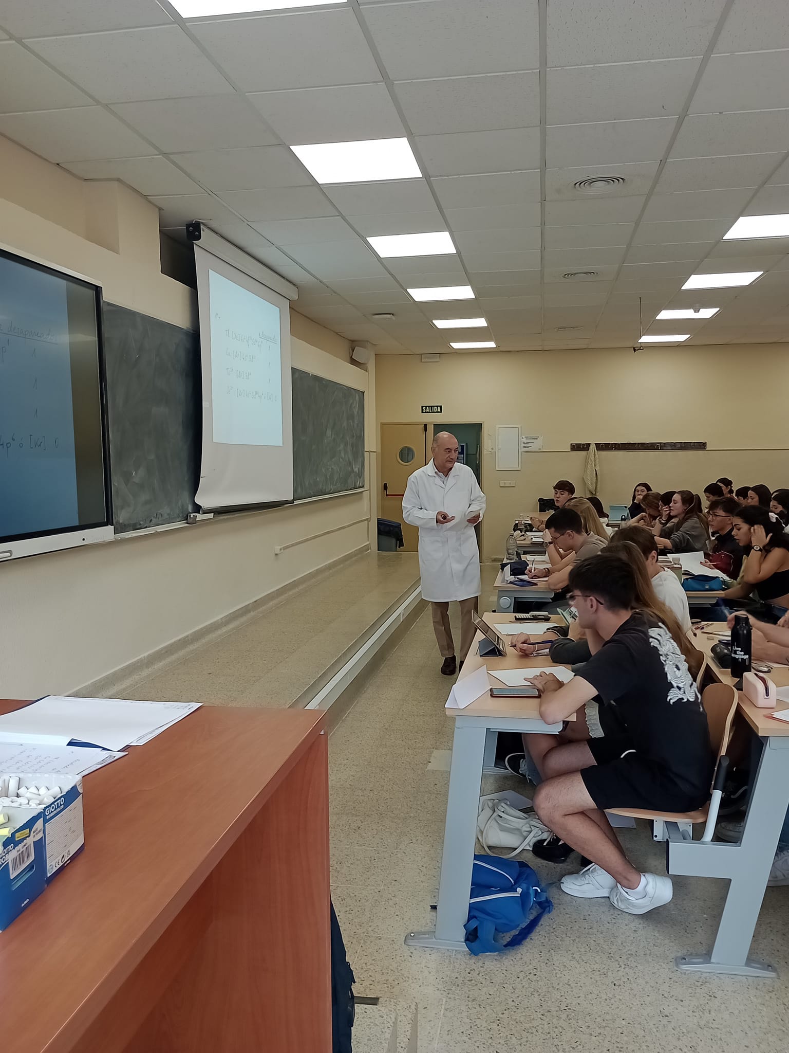 Durante unas jornadas sobre pedagogía de la química, en Alicante. Año 2024.