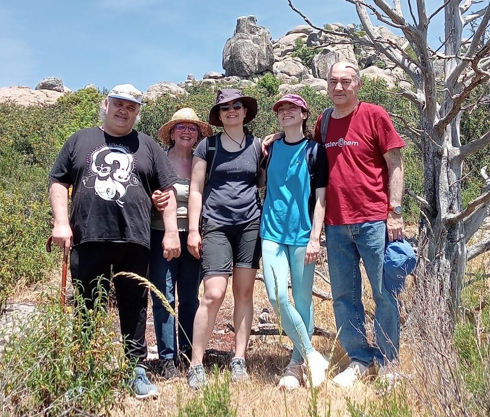 El año 2025 volvimos a subir al Pico del Águila, desde Moralzarzal. Lucía con su padre y su prima Daira y tíos Yolanda y Ramiro. Salida desde la puerta del que fuera el chalé Los Pinto, yendo Pedro a despedir a los excursionistas como en los viejos tiempos y todos orgullosos en la cumbre.